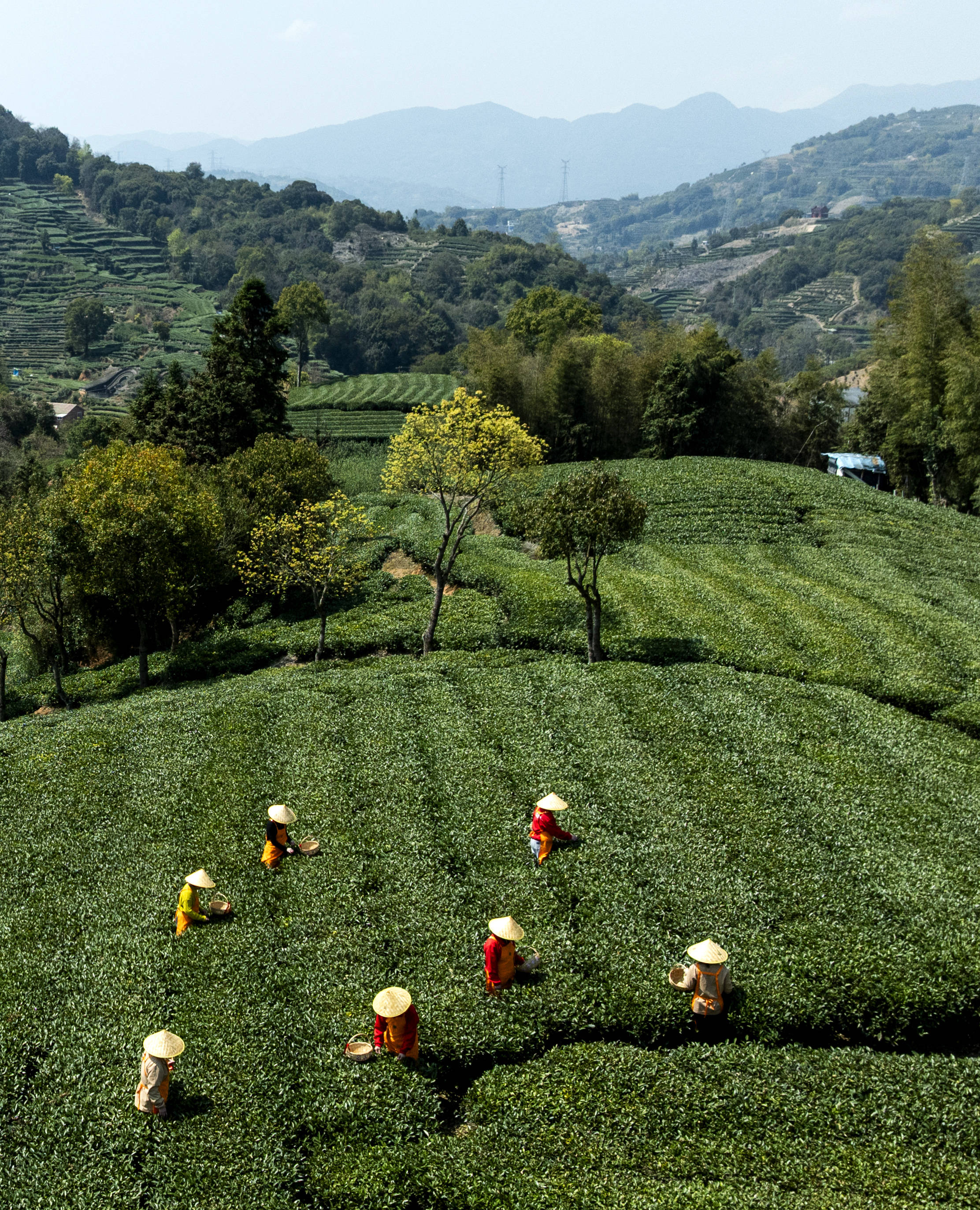 3月18日,采茶工人在六妙白茶股份(fen)无限公(gong)司的福鼎市国家古代农(nong)业(白茶)家当园里采摘茶青(无人机照片)。 新华(hua)社记者 魏培全 摄