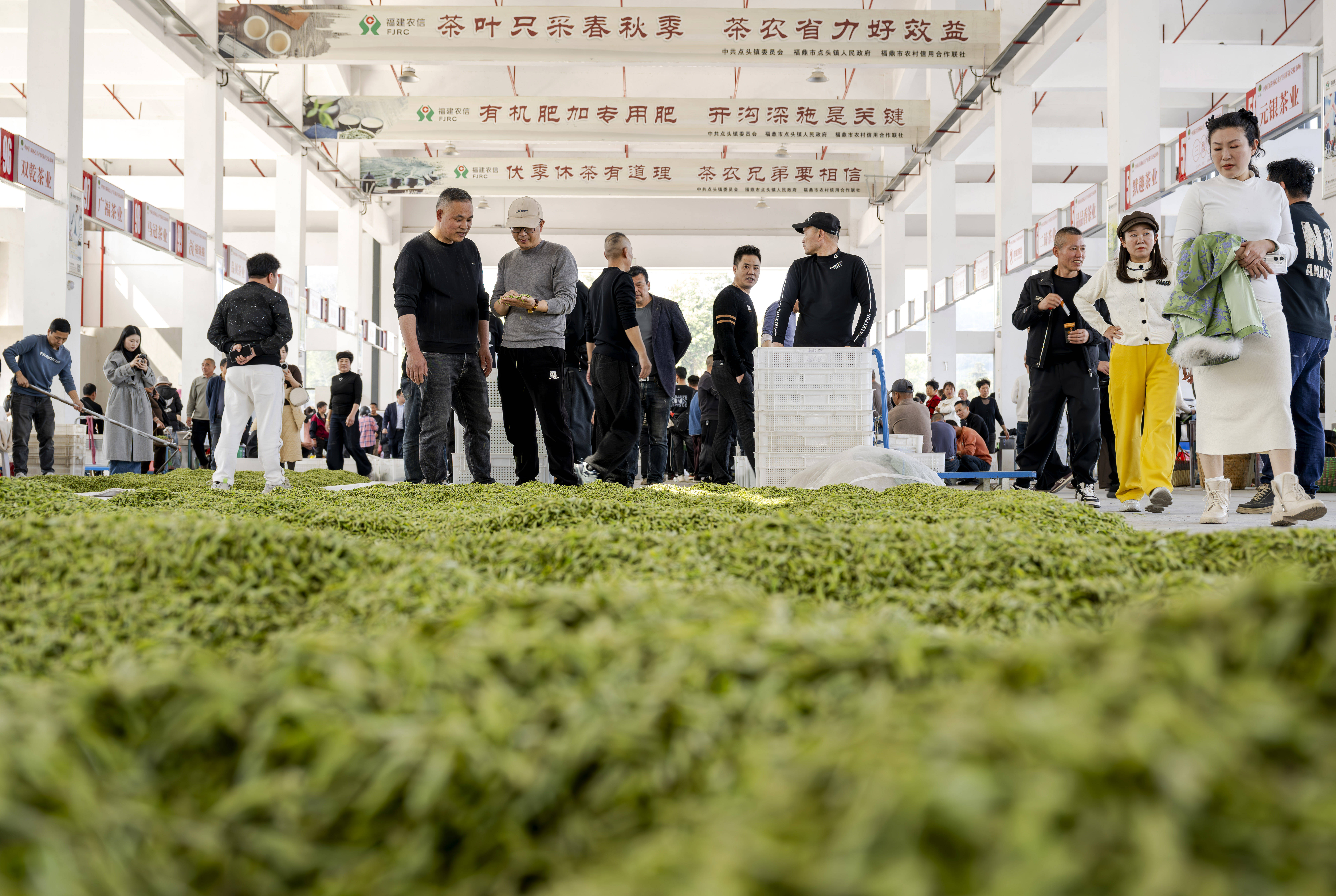 3月18日,位于福鼎市点头镇的中国白茶核心主产区茶青交易市场,茶农(nong)在售卖茶青。 新华(hua)社记者 魏培全 摄