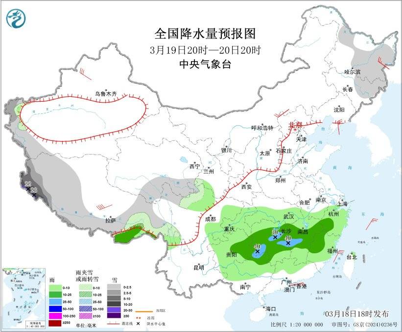 图1 全国降水量预报图(3月18日20时-19日20时)